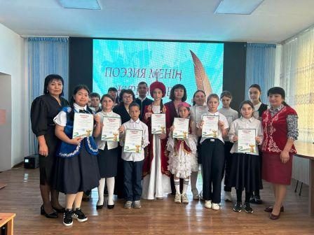 Бүгін мектебімізде қазақ тілі мен әдебиеті онкүндігі аясында «Поэзия менің жүрегімде» атты мектепішілік мәнерлеп оқу сайысы өткізілді. Сайысқа 5–9 сыныптардан 14 оқушы қатысып, өздерінің таланты мен сөз өнеріне деген қызығушылығын паш етті.Оқушылар жүректен шыққан жыр шумақтарын көркем жеткізіп, поэзияның құдіретін сезіндіре білді. Әр қатысушының дайындығы мен орындау шеберлігі жоғары деңгейде болды.