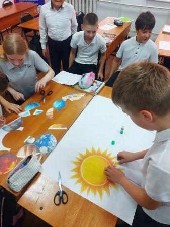 Ғарышкерлер күні қарсаңында, 2026 жылғы 10 сәуірде 5-сыныптарда ағылшын тілінен «Journey into Space» (Ғарышқа саяхат) тақырыбында қызықты ашық сабақ өтті. Сабақ әлемдегі өзекті оқиғаларға арналды.Сабақтың негізгі сәттері:Жаңа лексика: Оқушылар ағылшын тіліндегі негізгі терминдерді меңгерді: star (жұлдыз), galaxy (галактика), planet (планета), rocket (зымыран) және orbit (орбита).Интерактив пен квиздер: Балалар «Ғарыштық квиз» ойынына қатысып, Күн жүйесі туралы сұрақтарға ағылшын тілінде жауап берді. Бағдарламаға осы аптада Айды айналып өту миссиясын аяқтайтын NASA-ның «Artemis II» жобасы туралы соңғы жаңалықтар енгізілді.Шығармашылық тапсырма: Сабақ соңында оқушылар «The Solar System» атты жарқын плакат дайындап, онда барлық планеталарды өз орындарына дұрыс орналастырды.Іс-шараның мақсаты — сөздік қорды байыту ғана емес, сонымен қатар шет тілін үйренуді астрономиямен ұштастыра отырып, оқушыларды ғылым жетістіктерімен шабыттандыру.